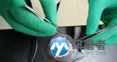 1、皮膚去脂肪層鋪展開效果取材,準備放入適配器液氮冷凍;